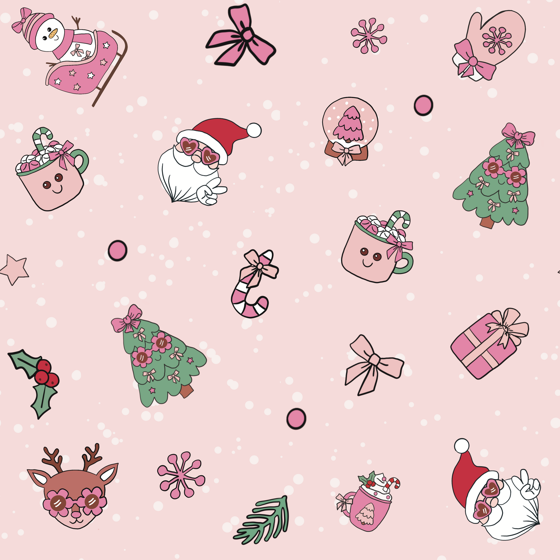 Celebrate the holiday season in style with this adorable long-sleeve twirl dress! Crafted from soft, comfortable fabric, this dress features an enchanting pink background adorned with playful Christmas-themed prints, including Santa faces, reindeer, holiday gifts, and charming Christmas trees. The dress is designed with puffy long sleeves, a flowy tiered skirt. Perfect for festive photo sessions, parties, or cozy family gatherings.