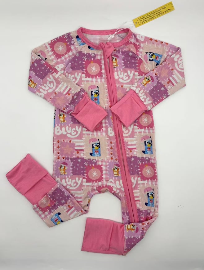 Celebrate the season in comfort and cuteness with our Pink Bluey Holiday Bamboo Pajamas! Featuring everyone’s favorite pup, Bluey, in a festive holiday print with cheerful pink accents, this one-piece is perfect for cozy nights and Christmas morning fun.