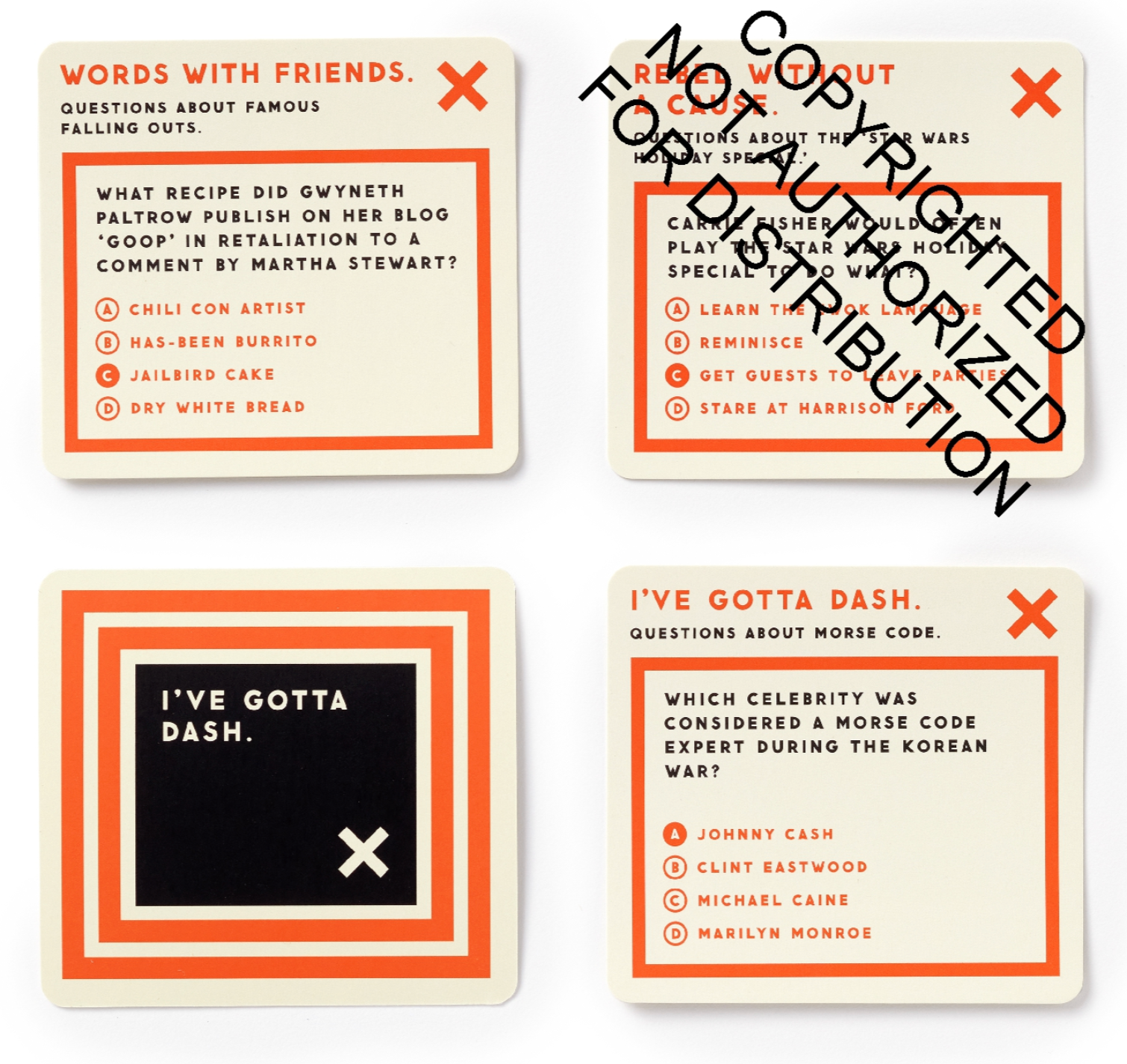 - Each question is grouped in an entertainingly-misleading category to keep everyone guessing-literally.