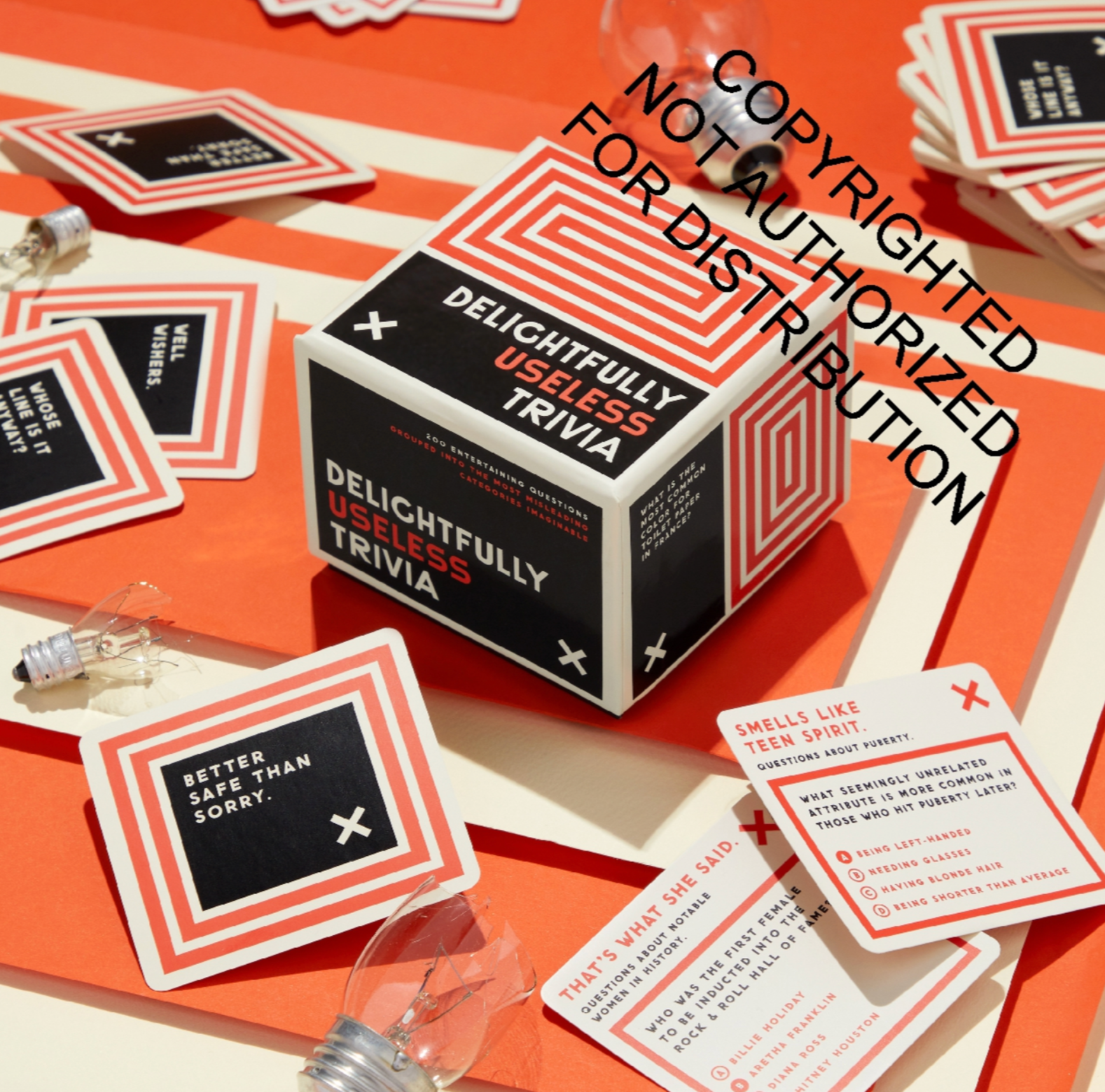 Trivia should be fun-not feel like a homework assignment. That's why this Delightfully Useless Trivia set by Brass Monkey is filled with some of the most pointless knowledge we could find. . .and even better, you'll choose your questions from a bunch of misleading categories. For example: 'Who's the Boss?' Those are questions about either Tony Danza or the Mafia, by the way.