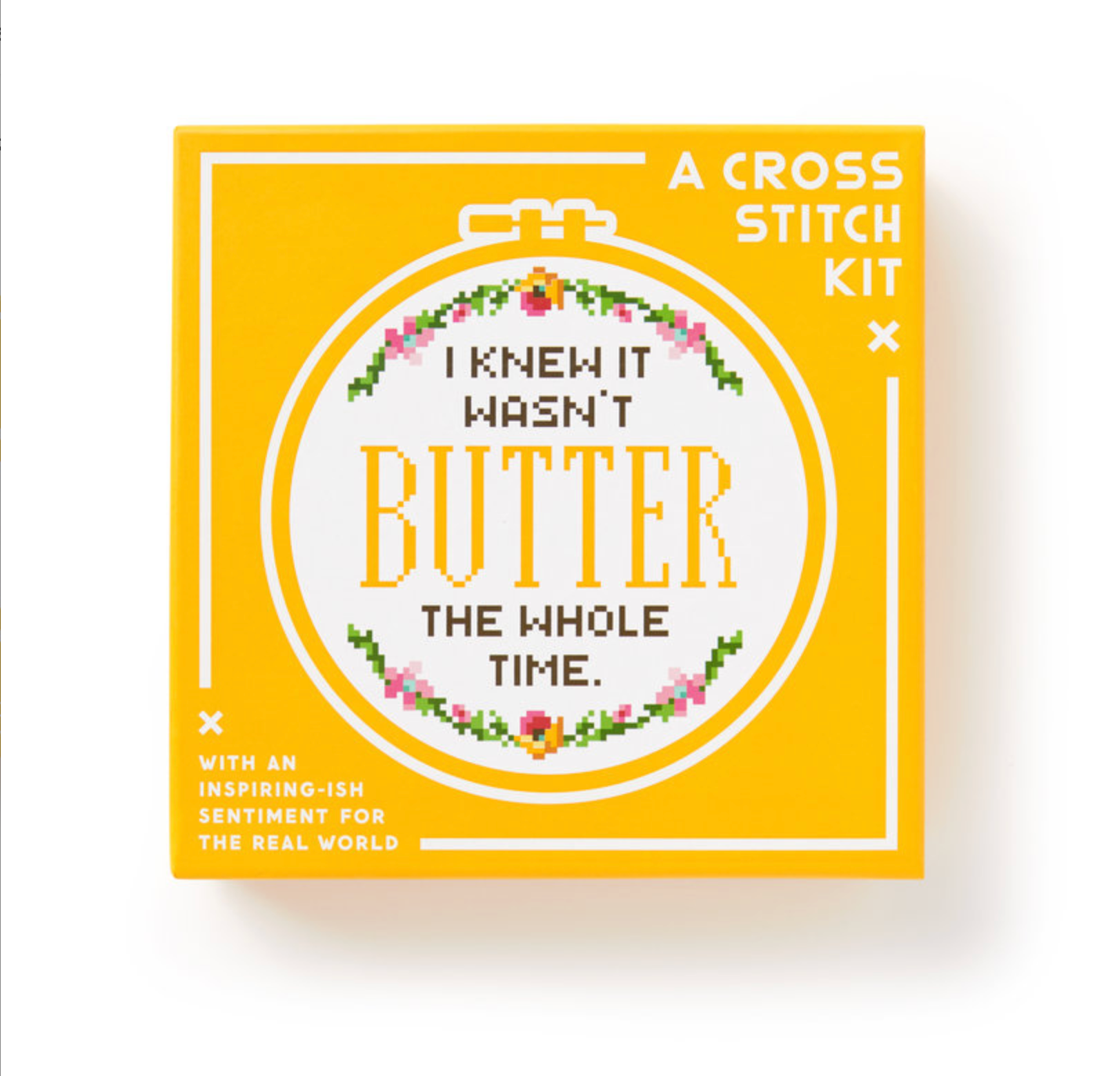 While everyone else is blessing-their-mess, you can stitch out a little dose of reality. This cross-stitch-kit-for-the-rest-of-us by Brass Monkey includes everything you need (besides the patience): an embroidery hoop, needle, Aida cloth, and all the floss you could possibly want. That's what they call the thread. . .you'll have to provide your own dental care supplies.