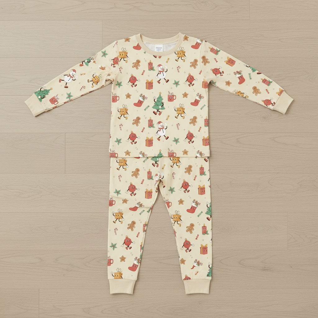 Cozy two-piece pajamas bring a touch of retro holiday charm to bedtime. Made from soft, breathable bamboo fabric, they feature a cheerful retro holiday print. The set includes a long-sleeve top and matching pants with an easy elastic waistband for all-night comfort and snug, secure fit.